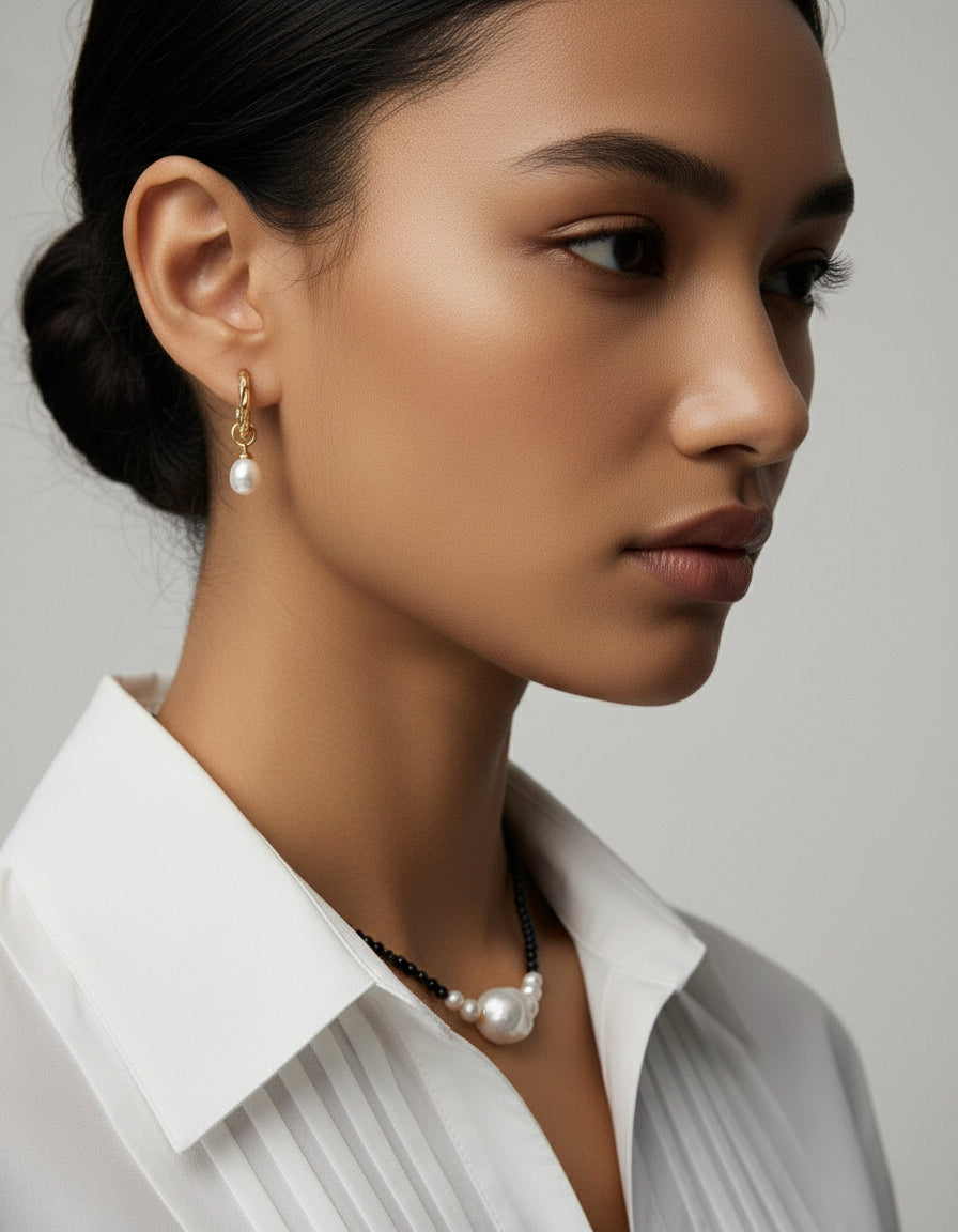 Elevate your style with the Midnight Glow Necklace, a stunning contrast of elegance and mystery. This piece combines natural baroque pearls and sleek 3mm black agate beads, offering a perfect balance between organic beauty and timeless sophistication. Finished with a retro gold-toned clasp and crafted in high-quality 925 silver, this necklace is a must-have for statement jewelry lovers.