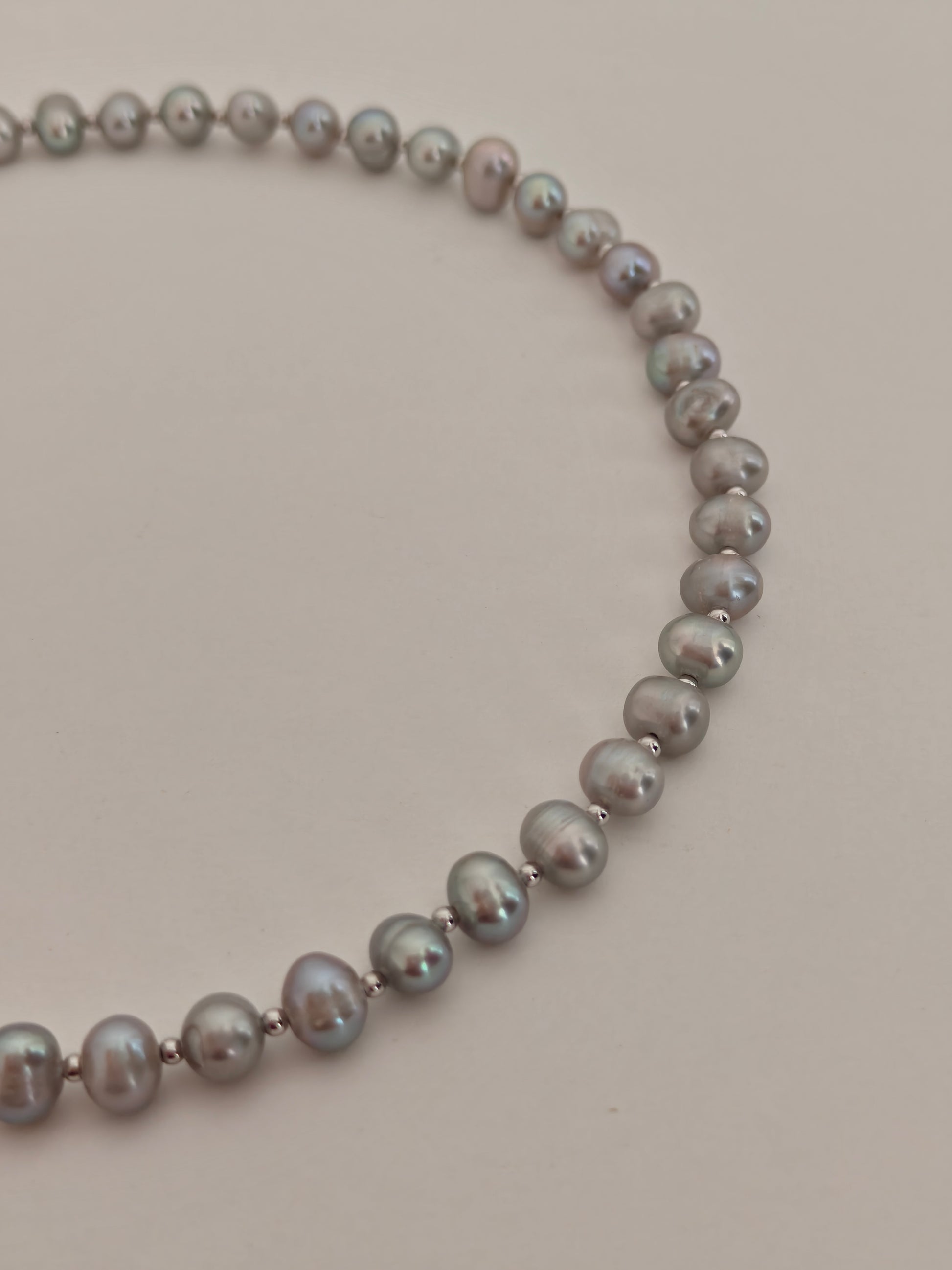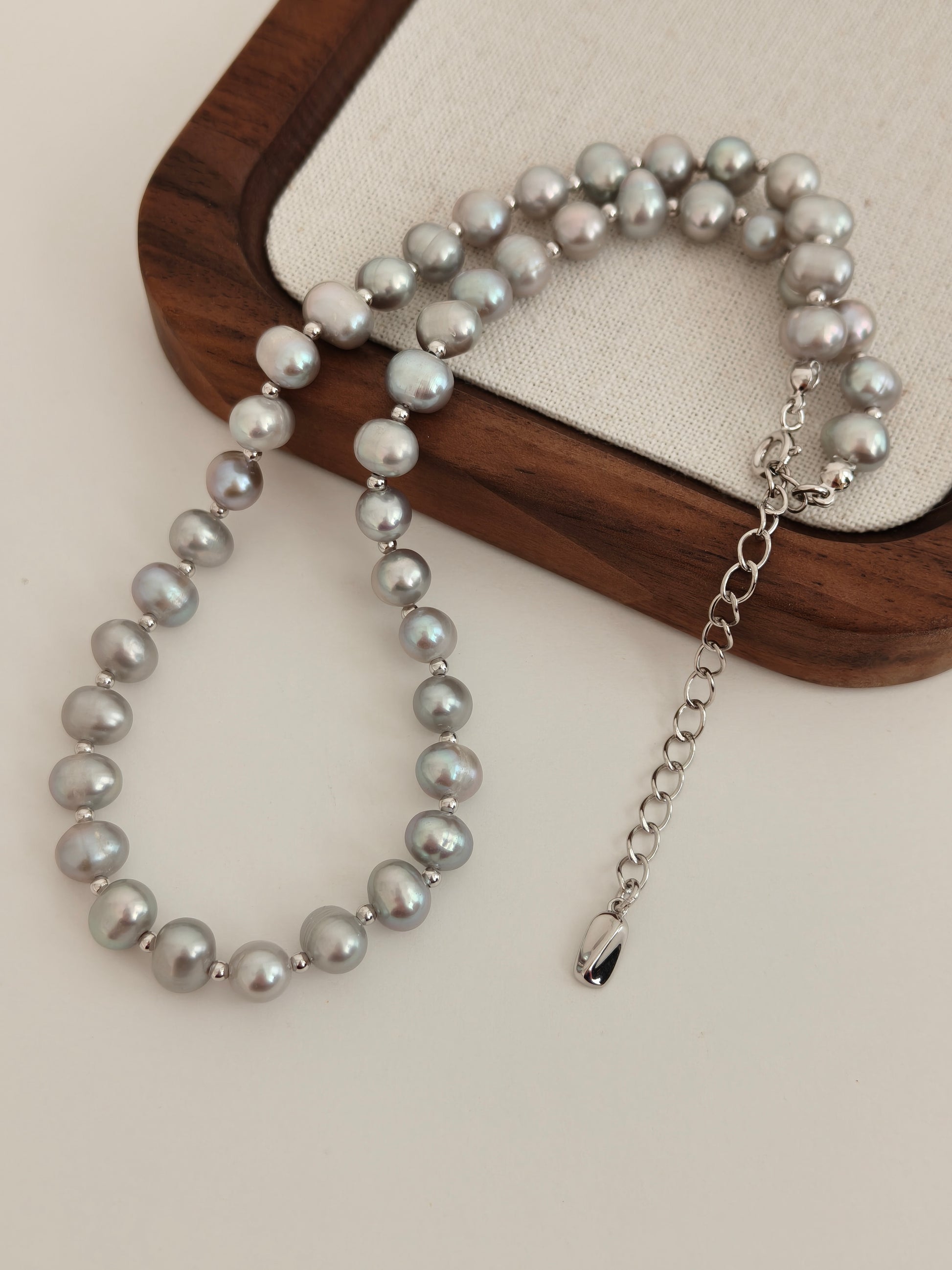 Style: Single strand pearls separated with small S925 beads for subtle shine.