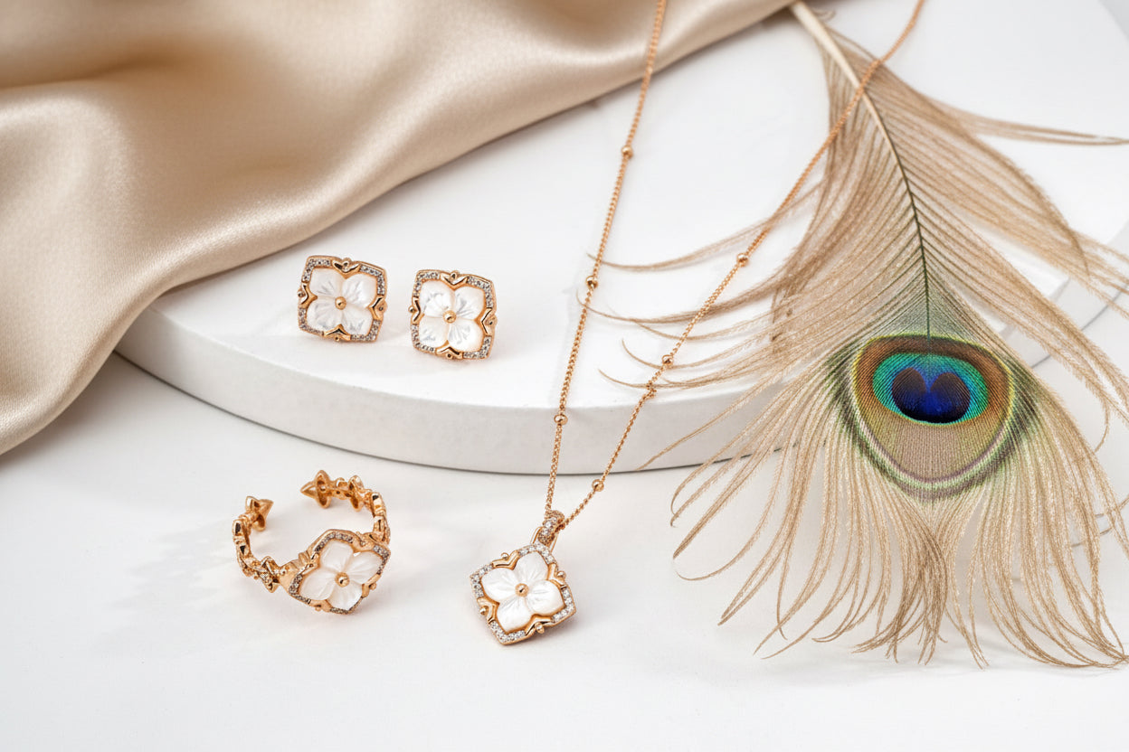 - Material: 925 Sterling Silver / White Mother-of-Pearl / Cubic Zirconia