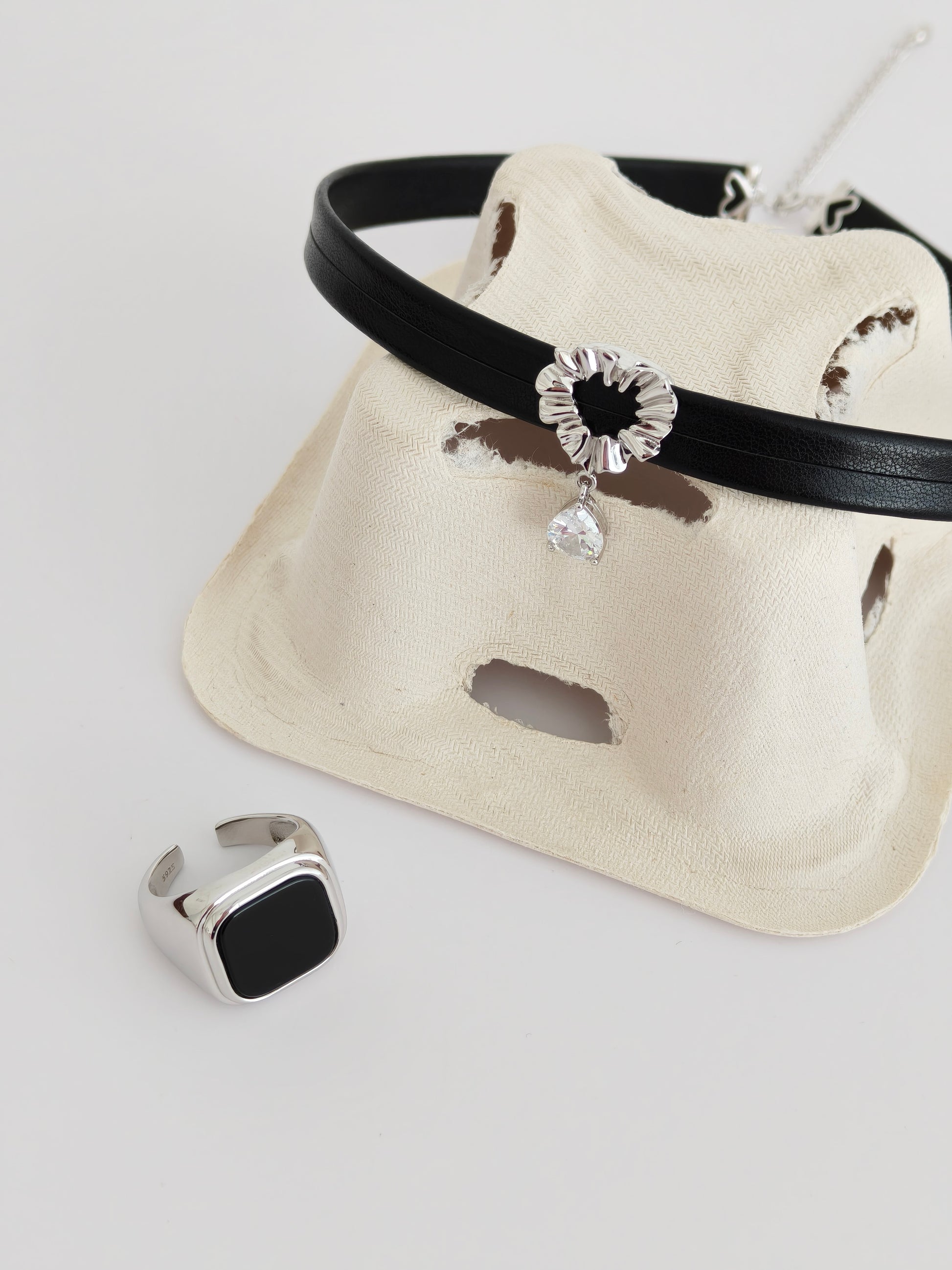 - Material: 925 Sterling Silver / Zircon / Velvet Ribbon / PU Leather