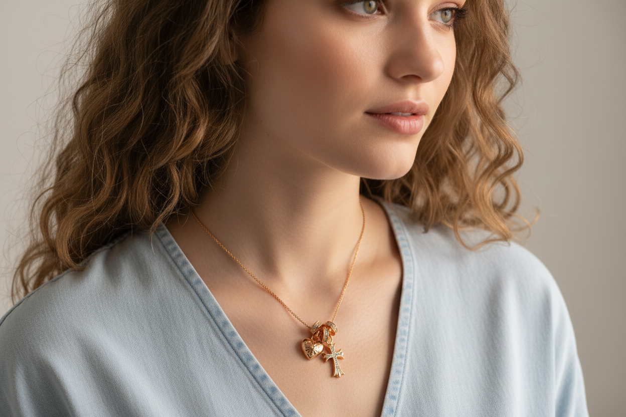 S925 Sterling Silver Cross & Heart Charm Necklace