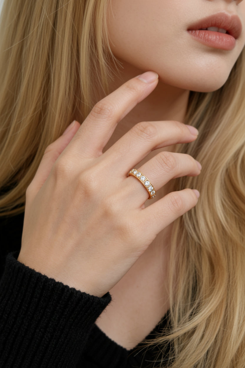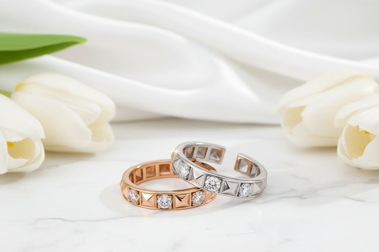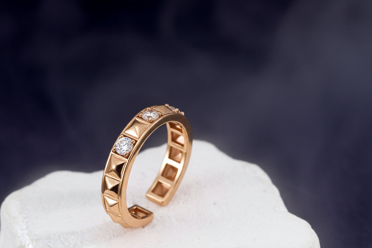 This S925 sterling silver open ring features sparkling cubic zirconia stones set in a modern geometric design. Finished in vintage gold or platinum tone, the adjustable open band offers a comfortable and flexible fit. Elegant yet contemporary, this ring is perfect for everyday wear or stacking with other minimalist jewelry.