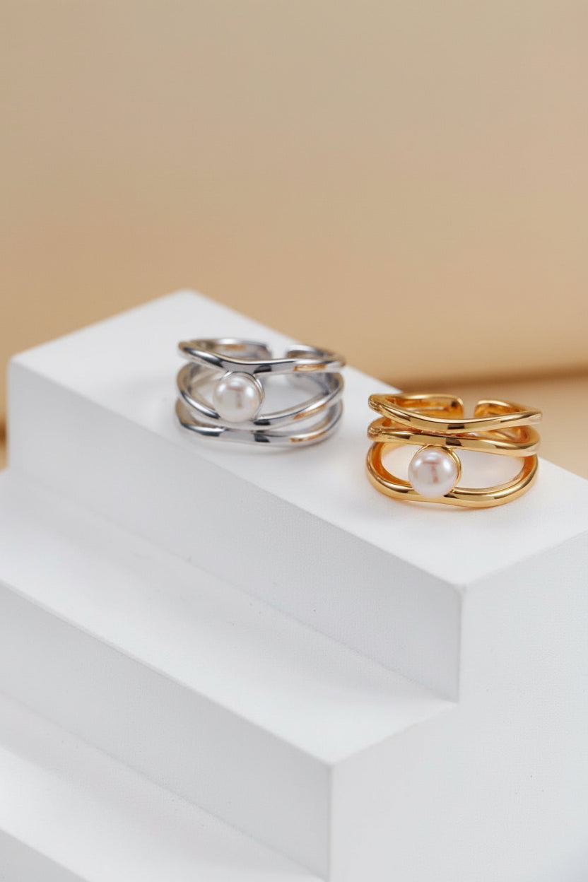 A modern take on timeless elegance. This layered open-band ring features a luminous natural pearl set in S925 sterling silver, creating a refined yet contemporary look. Comfortable and adjustable, it’s perfect for everyday wear or adding a touch of sophistication to special occasions.