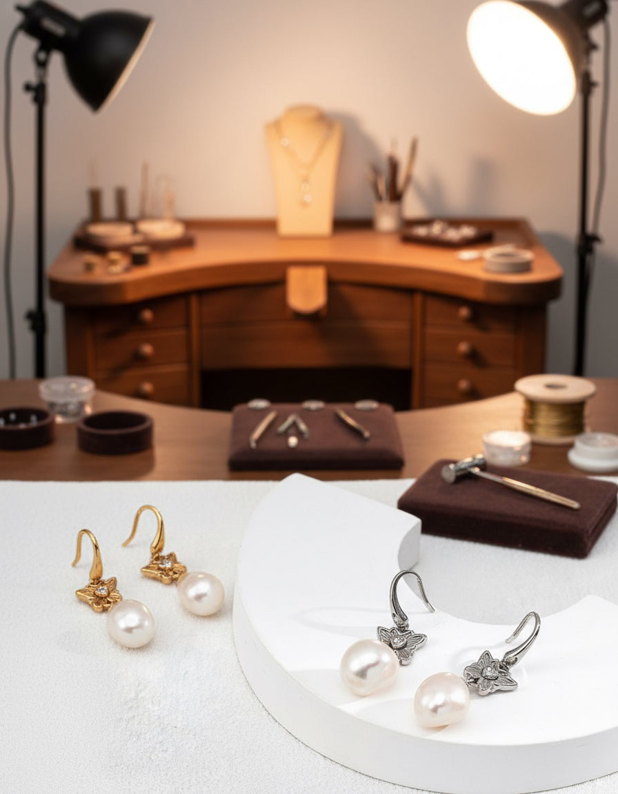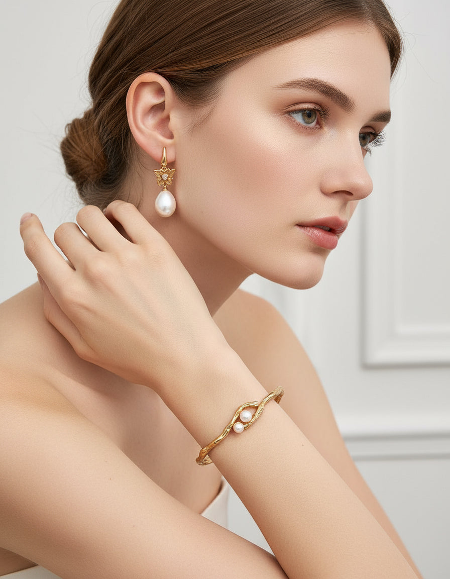 These elegant earrings feature natural baroque pearls suspended from intricately detailed vintage-style floral tops. Crafted in S925 sterling silver with a lustrous gold or platinum finish, each piece blends timeless charm with refined craftsmanship. The natural irregular pearls create a soft, organic glow that complements any look—from everyday elegance to special occasions.