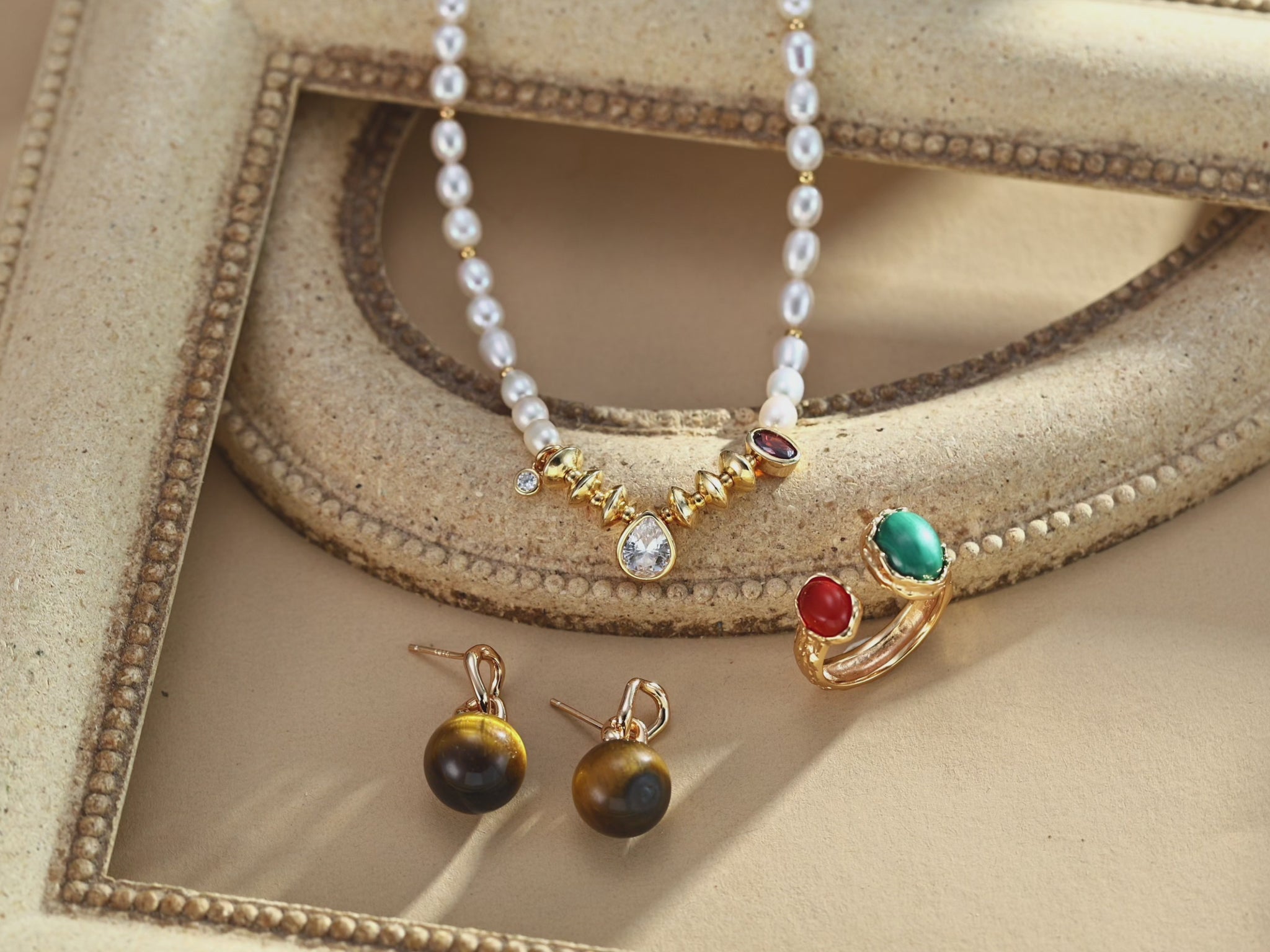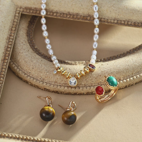 S925 Vintage Gold Natural Pearl & Zircon Necklace
