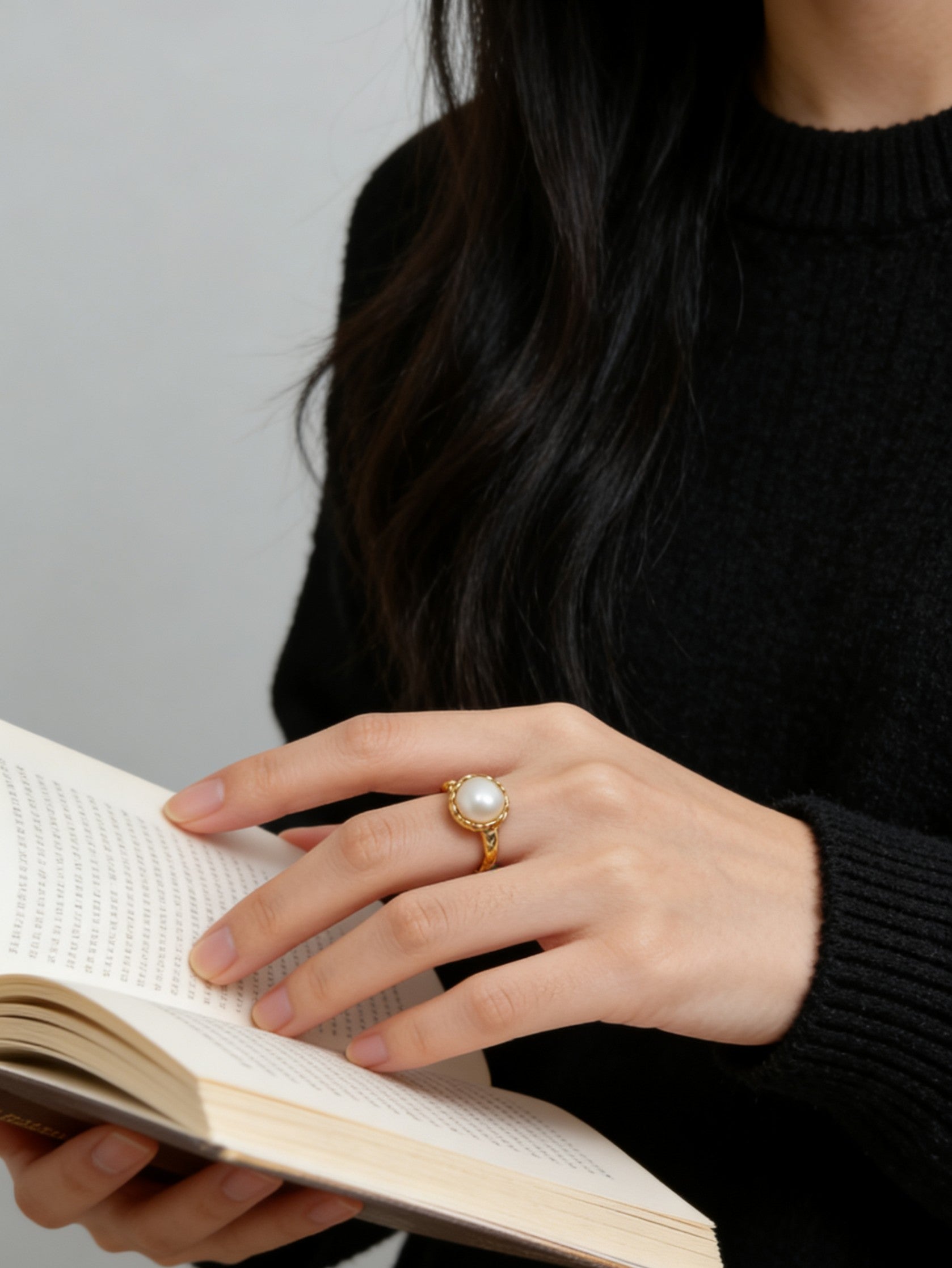 This S925 sterling silver pearl ring features a luminous natural freshwater pearl set in a refined vintage-inspired design. Finished in vintage gold or platinum tone, the adjustable open band ensures a comfortable fit for everyday wear. Elegant and timeless, this minimalist pearl ring pairs effortlessly with both casual and formal outfits.